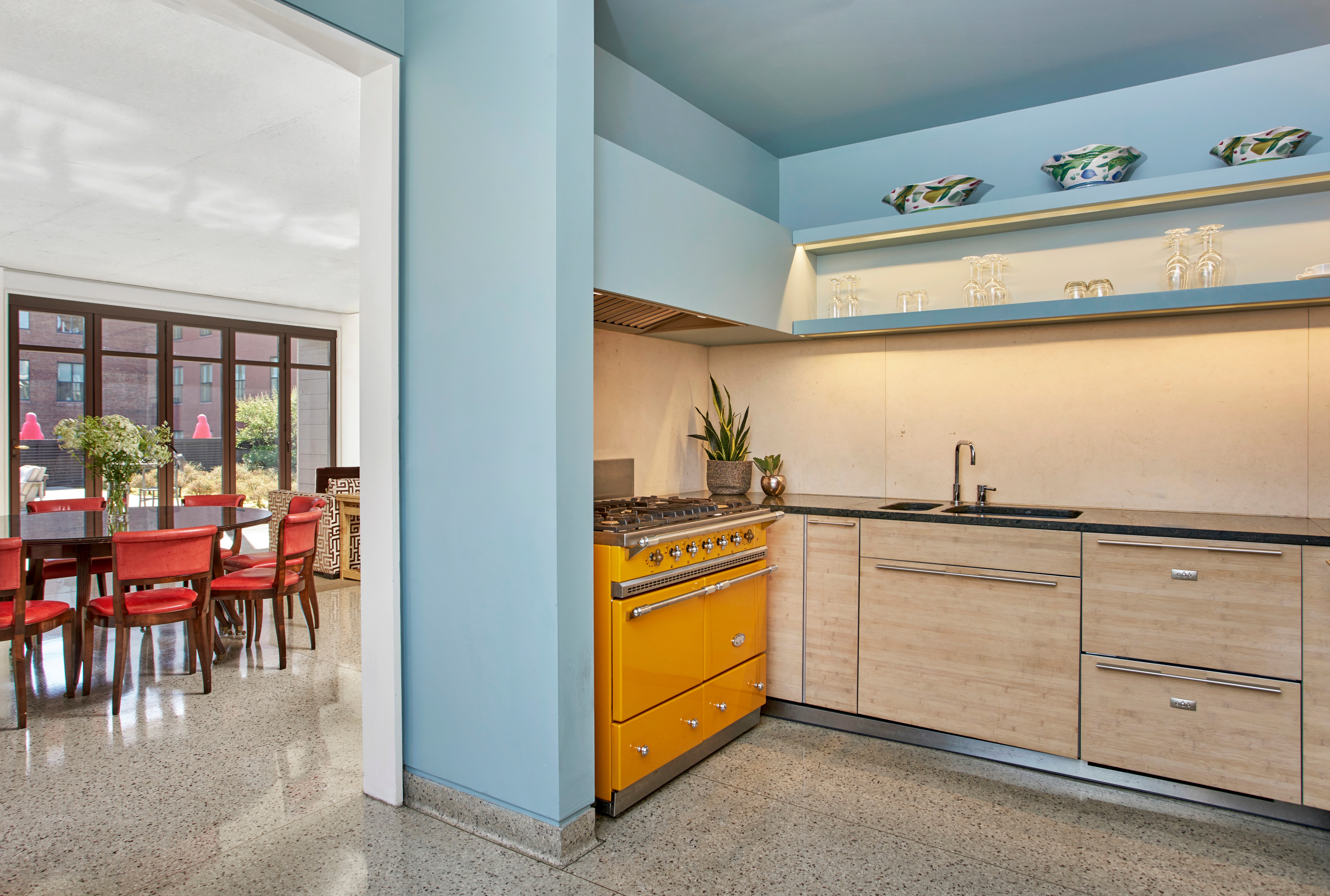 Spacious one-bedroom apartment with king-sized bed, full bath two half-baths, and open concept living + dining area. Also features a large private rooftop terrace with sweeping views of Main Street and the Ohio River.
